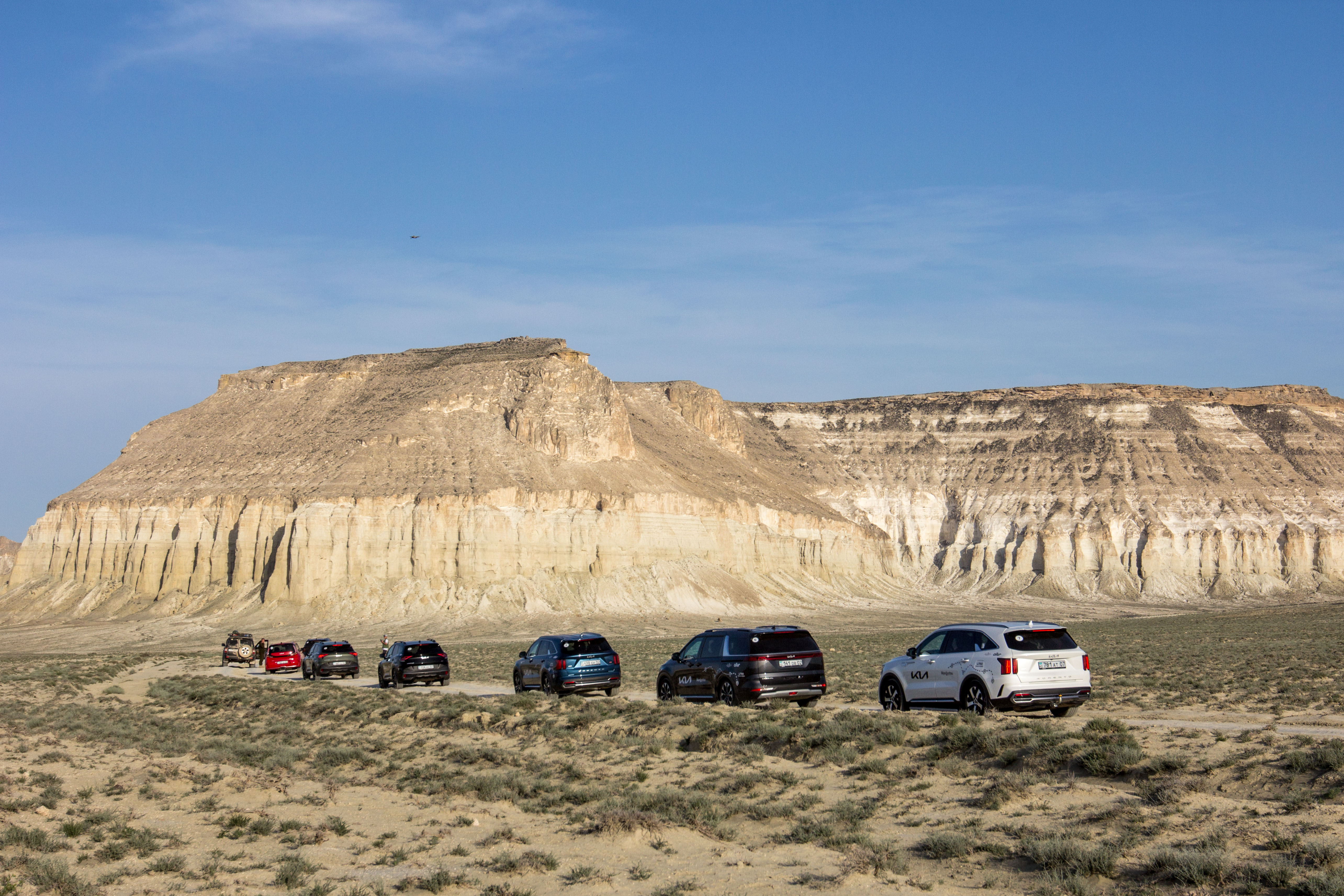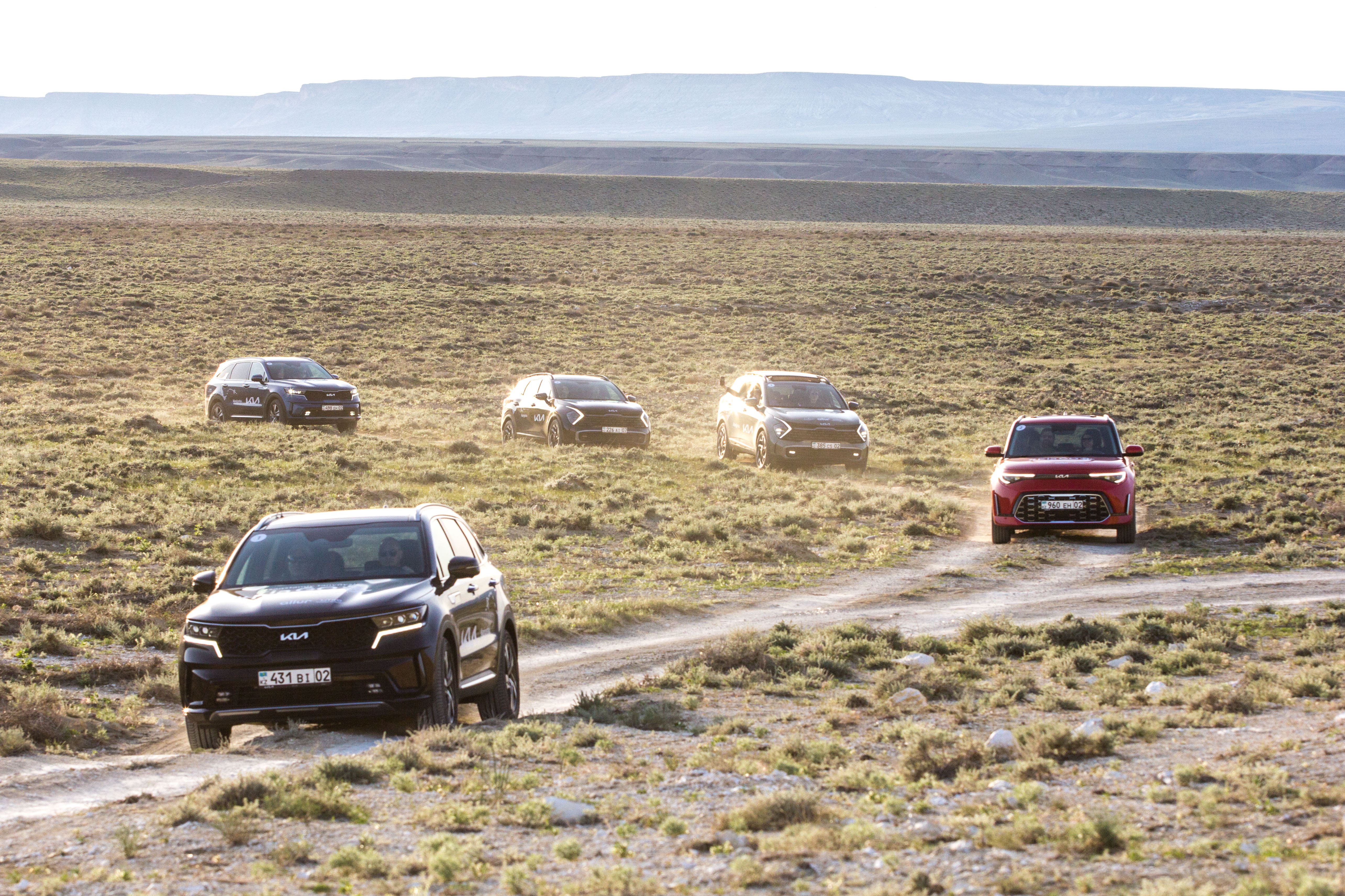 Маршрут пробега со стартом и финишем в Актау включал различные дорожные покрытия – от хорошего до разбитого асфальта и грунтовок, чтобы участники могли полноценно испытать автомобили Kia, прочувствовав характер каждой модели. Колонна из семи автомобилей включала обновленный компакт-кроссовер Soul, кроссоверы Sportage и Sorento, а также кроссвэн Carnival, в очередной раз доказав, что для автотуризма в Казахстане совсем не обязательно иметь внедорожник. Сюрпризом для участников стало появление на отрезке пробега нового электрического кроссовера Kia EV6.