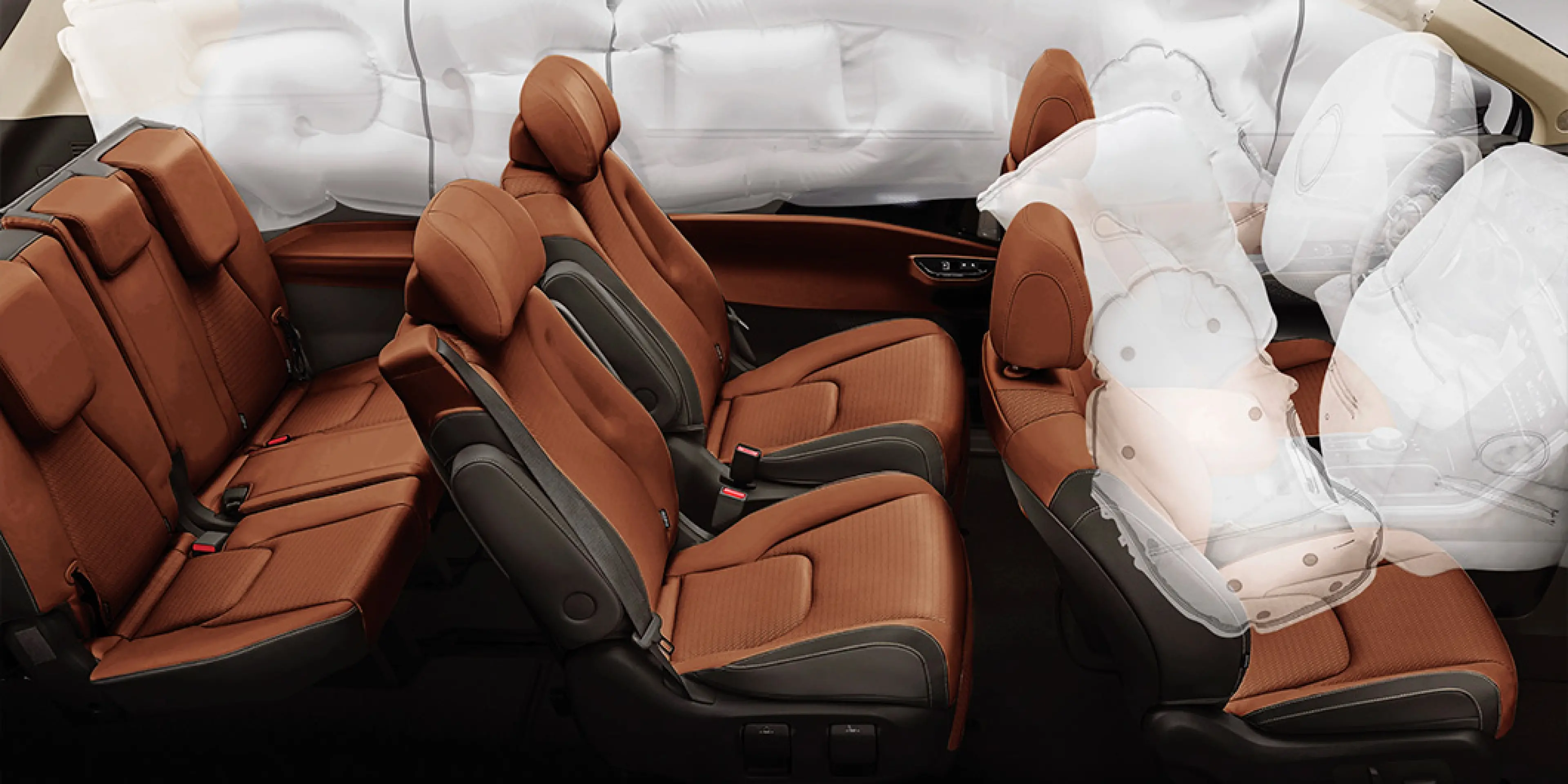 Автомобиль оборудован передними, центральными и боковыми подушками безопасности. Расширенные подушки защищают водителя и пассажиров на передних сиденьях, центральная боковая подушка безопасности первого ряда предотвращает столкновение между пассажирами, а шторные подушки безопасности чувствительны к опрокидыванию. Отдельная подушка предназначена для коленей водителя. В общей сложности салон Kia Carnival оборудован восемью подушками безопасности, которые обеспечивают дополнительную защиту водителя и пассажиров.