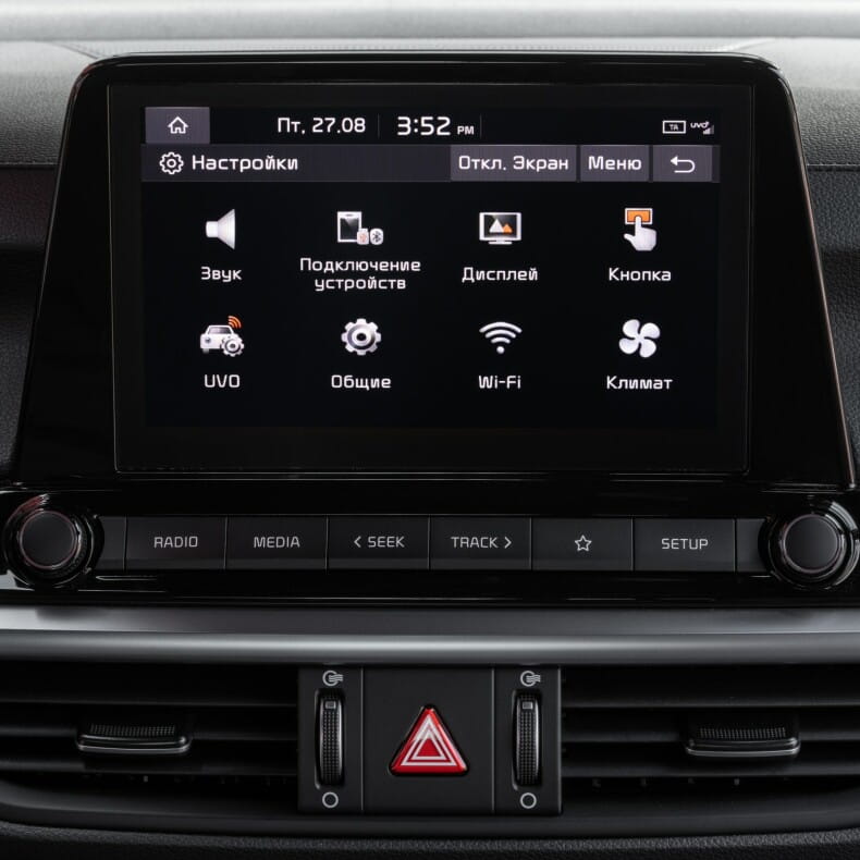 Приборная панель Cerato выглядит изящно и премиально благодаря дизайну, в котором нет ничего лишнего. Элегантность решений, продуманный алгоритм информирования водителя на приборной панели и дисплее мультимедийной системы. Металлические акценты в отделке придают спортивный и при этом утонченный вид, а плавные линии дополняют единый дизайн вентиляционных отверстий в форме турбин.