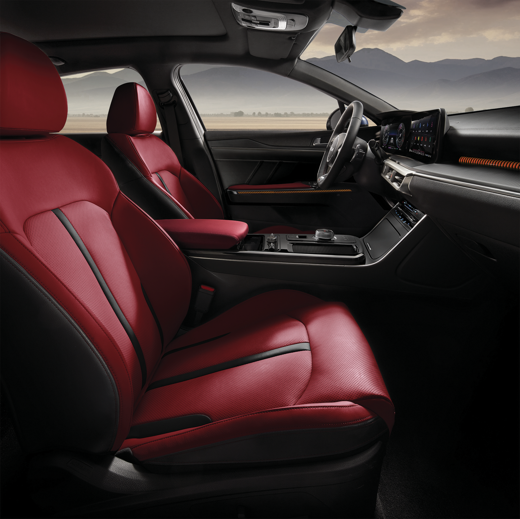 Салон обновленного Kia K5 ориентирован на водителя. Технологичные опции комфорта позволяют насладиться как деловой поездкой, так и долгим путешествием.